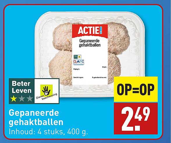 Bekijk nu de Gepaneerde gehaktballen aanbieding in de ALDI folder. Deze aanbieding is geldig van 19-08-2024 tot en met 25-08-2024.