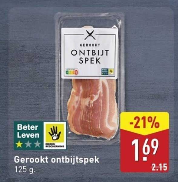 Bekijk de Gerookt Ontbijtspek aanbieding bij ALDI! Deze fantastische aanbieding is nu beschikbaar in de nieuwste ALDI folder. Profiteer van deze kans en bespaar flink op je aankoop.