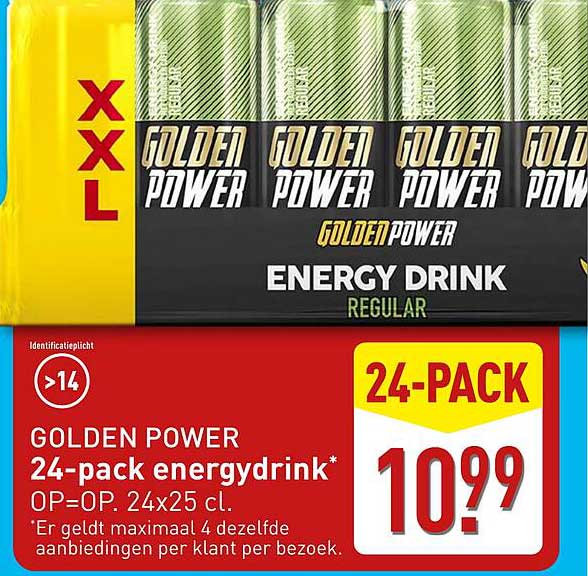 Bekijk nu de GOLDEN POWER 24-pack energydrink* aanbieding in de ALDI folder. Deze aanbieding is geldig van 07-07-2025 tot en met 13-07-2025.