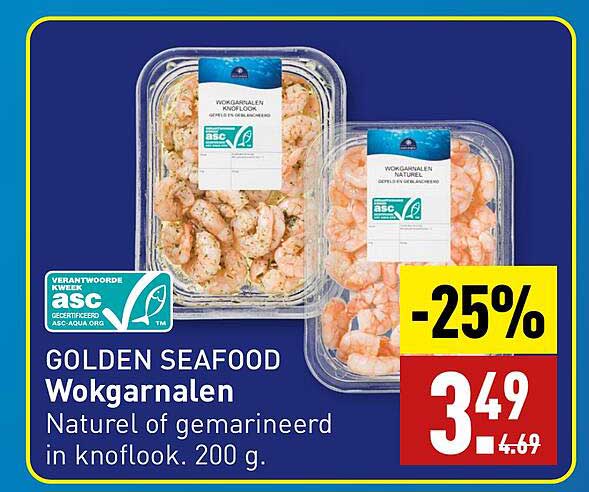 Bekijk de Golden Seafood Wokgarnalen aanbieding bij ALDI! Deze fantastische aanbieding is nu beschikbaar in de nieuwste ALDI folder. Profiteer van deze kans en bespaar flink op je aankoop.