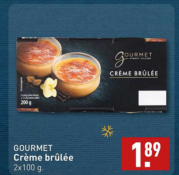 Ontdek de geweldige Gourmet Crème Brulée aanbieding in de nieuwste ALDI folder. Naast deze aanbieding vind je nog veel meer aantrekkelijke kortingen. Je kunt de Gourmet Crème Brulée eenvoudig online bestellen via de ALDI website of kopen in een winkel bij jou in de buurt.