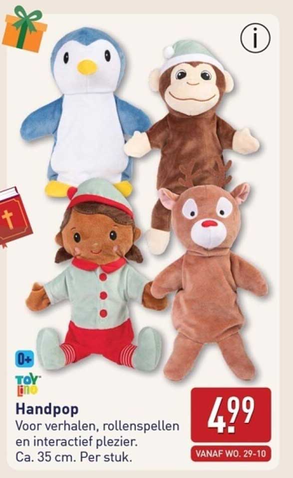 Met een introductieprijs van slechts €4,99 per stuk, bieden deze handpoppen een geweldige waarde. Vergelijk dit met andere speelgoedopties voor kinderen en je zult merken dat je een geweldige deal hebt gevonden. Deze aanbieding is geldig van 27 oktober tot en met 2 november 2025.