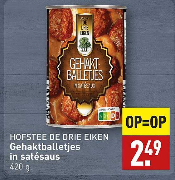 Hofstee De Drie Eiken Gehacktballetjes In Satésaus aanbieding bij ALDI