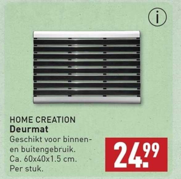 Bekijk de Home Creation Deurmat aanbieding bij ALDI! Deze fantastische aanbieding is nu beschikbaar in de nieuwste ALDI folder. Profiteer van deze kans en bespaar flink op je aankoop.