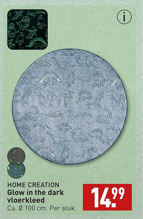 Bekijk de Home Creation Glow In The Dark Vloerkleed aanbieding bij ALDI! Deze fantastische aanbieding is nu beschikbaar in de nieuwste ALDI folder. Profiteer van deze kans en bespaar flink op je aankoop.