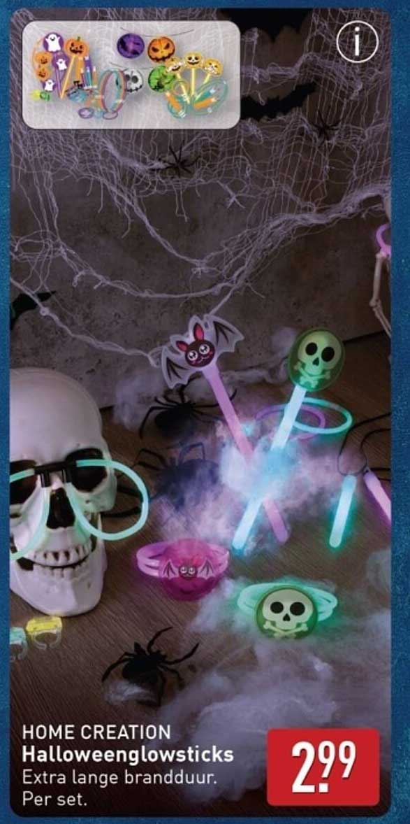 Bekijk nu de HOME CREATION Halloween glowsticks aanbieding in de ALDI folder. Deze aanbieding is geldig van 06-10-2025 tot en met 12-10-2025.