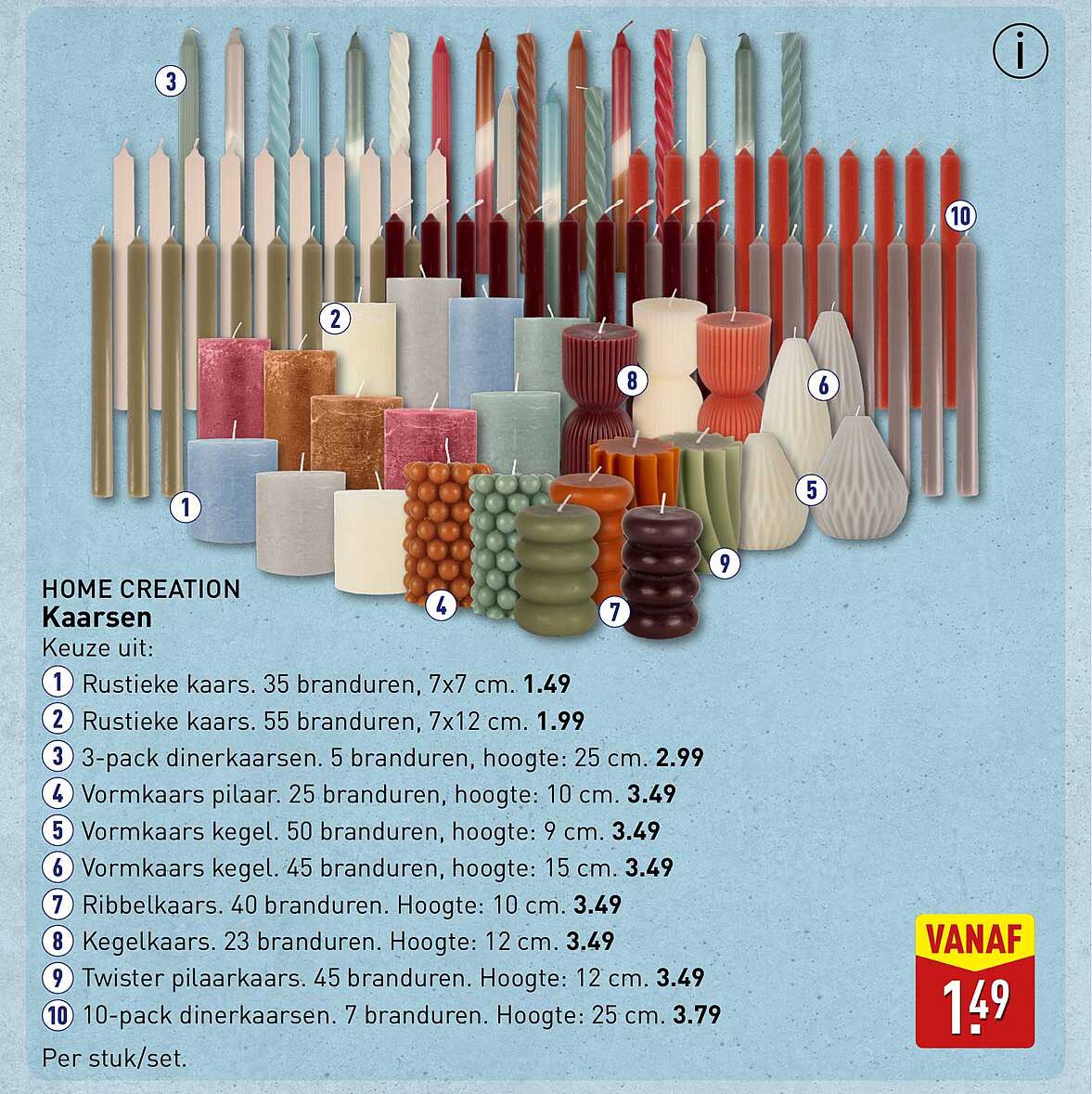Bekijk de Home Creation Kaarsen aanbieding bij ALDI! Deze fantastische aanbieding is nu beschikbaar in de nieuwste ALDI folder. Profiteer van deze kans en bespaar flink op je aankoop.