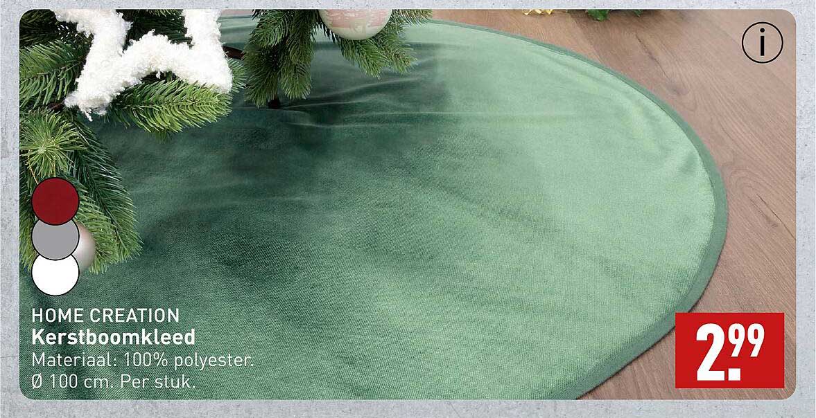 Bekijk de Home Creation Kerstboomkleed aanbieding bij ALDI! Deze fantastische aanbieding is nu beschikbaar in de nieuwste ALDI folder. Profiteer van deze kans en bespaar flink op je aankoop.