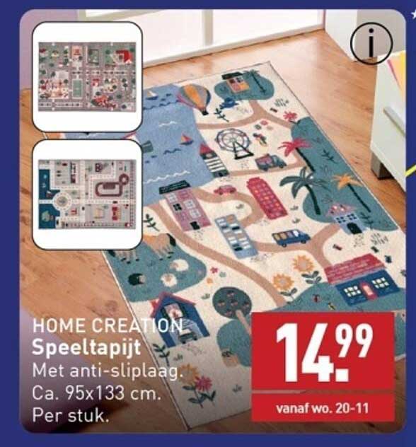 Bekijk de Home Creation Speeltapijt aanbieding bij ALDI! Deze fantastische aanbieding is nu beschikbaar in de nieuwste ALDI folder. Profiteer van deze kans en bespaar flink op je aankoop.
