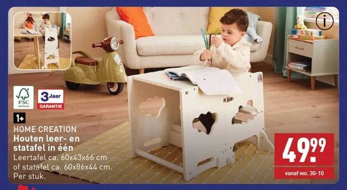 Bekijk de Houten Leer- En Statafel In Één aanbieding bij ALDI! Deze fantastische aanbieding is nu beschikbaar in de nieuwste ALDI folder. Profiteer van deze kans en bespaar flink op je aankoop.