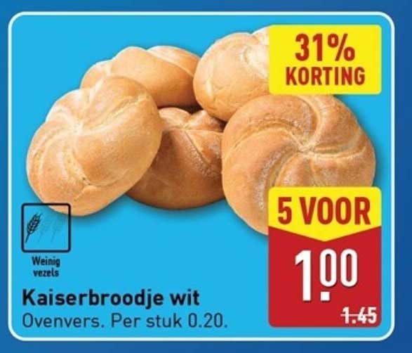 Normaal gesproken betaal je €1,45 voor vijf Kaiserbroodjes, maar met deze aanbieding bespaar je €0,45! Dit maakt het een fantastische kans om je voorraad aan te vullen zonder de bank te breken. Dit soort aanbiedingen zijn zeldzaam, dus grijp je kans!