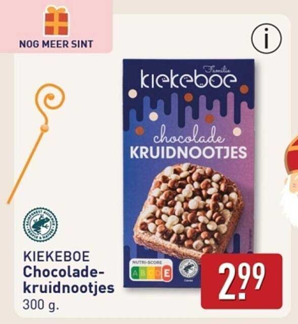 Bekijk nu de KIEKEBOE Chocolade-kruidnootjes 300 g aanbieding in de ALDI folder. Deze aanbieding is geldig van 10-11-2025 tot en met 16-11-2025.