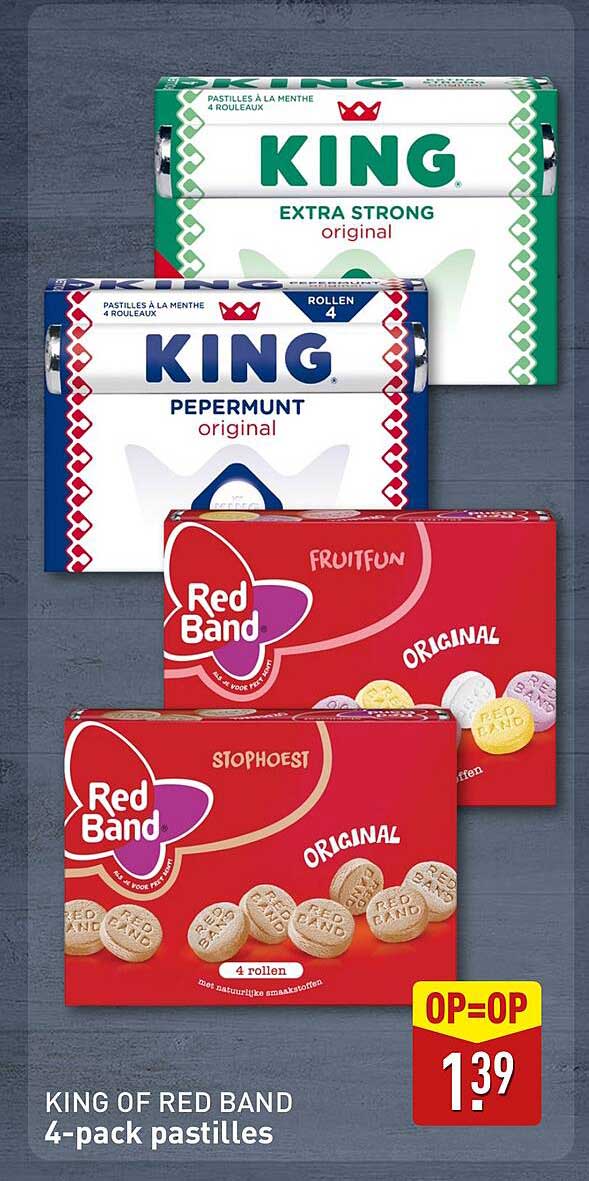Bekijk nu de KING OF RED BAND 4-pack pastilles aanbieding in de ALDI folder. Deze aanbieding is geldig van 14-04-2025 tot en met 20-04-2025.
