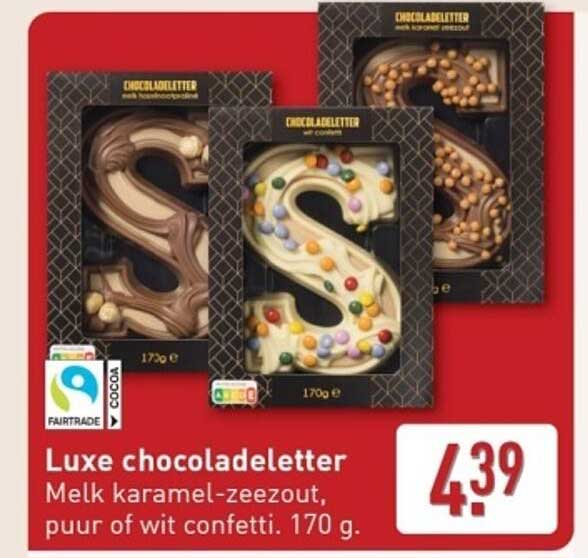 De feestdagen komen eraan en wat is er beter dan een heerlijke luxe chocoladeletter? Deze aanbieding van ALDI biedt je de kans om te genieten van een hemelse chocolade ervaring, perfect voor de Sinterklaas viering of gewoon als traktatie voor jezelf of je dierbaren. Met een keuze uit melk, karamel-zeezout en puur met confetti, is er voor ieder wat wils!