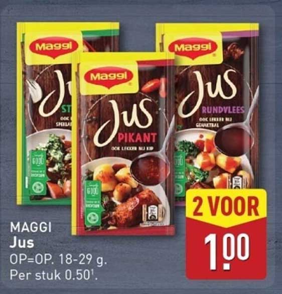 Bekijk de Maggi Jus aanbieding bij ALDI! Deze fantastische aanbieding is nu beschikbaar in de nieuwste ALDI folder. Profiteer van deze kans en bespaar flink op je aankoop.