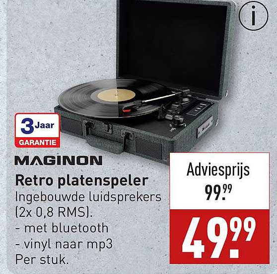 Bekijk de Maginon Retro Platenspeler aanbieding bij ALDI! Deze fantastische aanbieding is nu beschikbaar in de nieuwste ALDI folder. Profiteer van deze kans en bespaar flink op je aankoop.