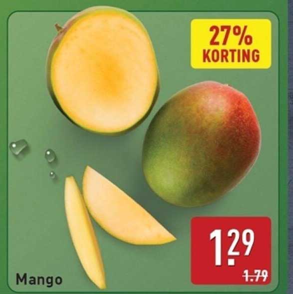 Normaal gesproken betaal je voor een mango gemiddeld €1,79. Met de huidige aanbieding van €1,29 bespaar je maar liefst 50 cent per stuk! Dit maakt het nog aantrekkelijker om deze heerlijke vrucht aan je boodschappenlijst toe te voegen.
