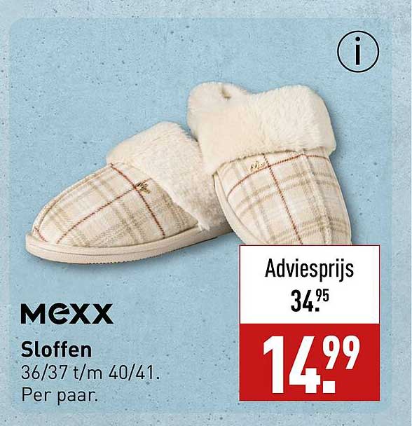 Bekijk de Mexx Sloffen aanbieding bij ALDI! Deze fantastische aanbieding is nu beschikbaar in de nieuwste ALDI folder. Profiteer van deze kans en bespaar flink op je aankoop.