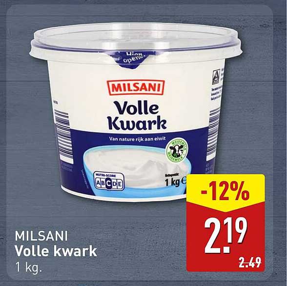 Bekijk de Milsaani Volle Kwark aanbieding bij ALDI! Deze fantastische aanbieding is nu beschikbaar in de nieuwste ALDI folder. Profiteer van deze kans en bespaar flink op je aankoop.
