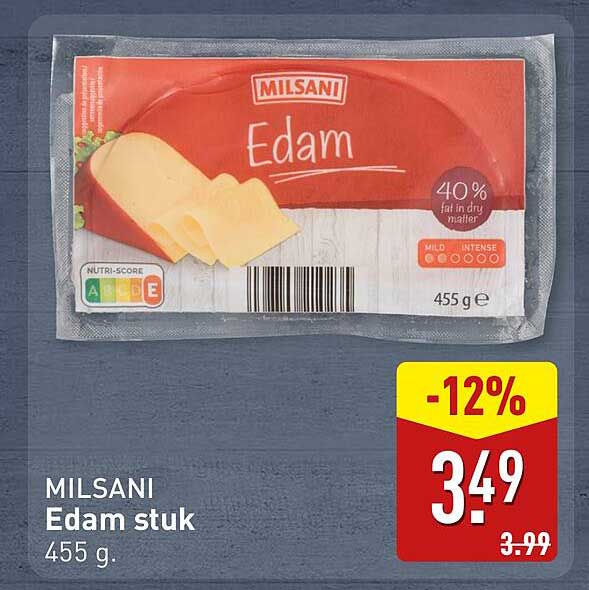 Bekijk nu de MILSANI Edam stuk aanbieding in de ALDI folder. Deze aanbieding is geldig van 14-04-2025 tot en met 20-04-2025.