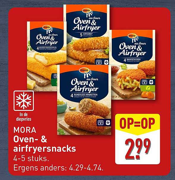 Bekijk de Mora Oven- & Airfryersnacks aanbieding bij ALDI! Deze fantastische aanbieding is nu beschikbaar in de nieuwste ALDI folder. Profiteer van deze kans en bespaar flink op je aankoop.