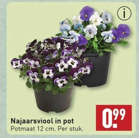 Bekijk de Najaarviolen In Pot aanbieding bij ALDI! Deze fantastische aanbieding is nu beschikbaar in de nieuwste ALDI folder. Profiteer van deze kans en bespaar flink op je aankoop.