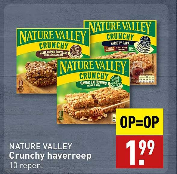 Ontdek de geweldige Nature Valley Crunchy Haverreep aanbieding in de nieuwste ALDI folder. Naast deze aanbieding vind je nog veel meer aantrekkelijke kortingen. Je kunt de Nature Valley Crunchy Haverreep eenvoudig online bestellen via de ALDI website of kopen in een winkel bij jou in de buurt.