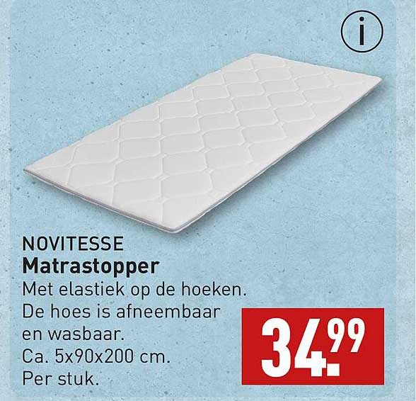 Bekijk de Novitesse Matrastopper aanbieding bij ALDI! Deze fantastische aanbieding is nu beschikbaar in de nieuwste ALDI folder. Profiteer van deze kans en bespaar flink op je aankoop.