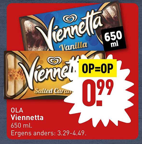 Ontdek de geweldige Ola Viennetta aanbieding in de nieuwste ALDI folder. Naast deze aanbieding vind je nog veel meer aantrekkelijke kortingen. Je kunt de Ola Viennetta eenvoudig online bestellen via de ALDI website of kopen in een winkel bij jou in de buurt.