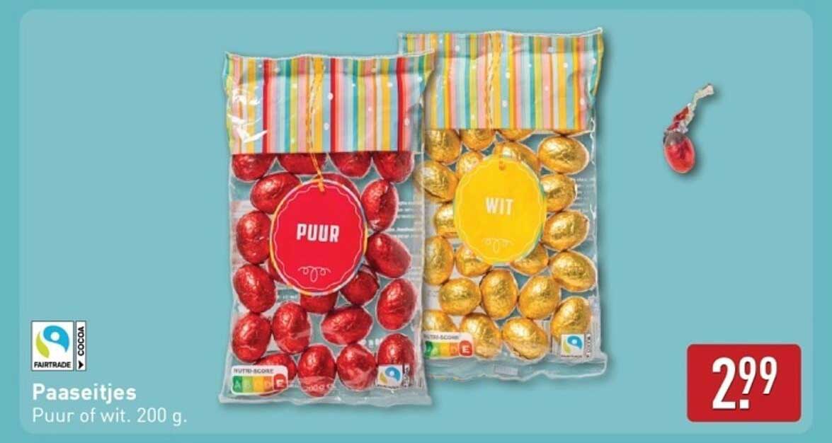Bekijk nu de Paaseitjes Puur of wit 200 g. aanbieding in de ALDI folder. Deze aanbieding is geldig van 06-04-2025 tot en met 21-04-2025.