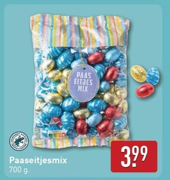 Bekijk nu de Paaseitjesmix aanbieding in de ALDI folder. Deze aanbieding is geldig van 06-04-2025 tot en met 21-04-2025.