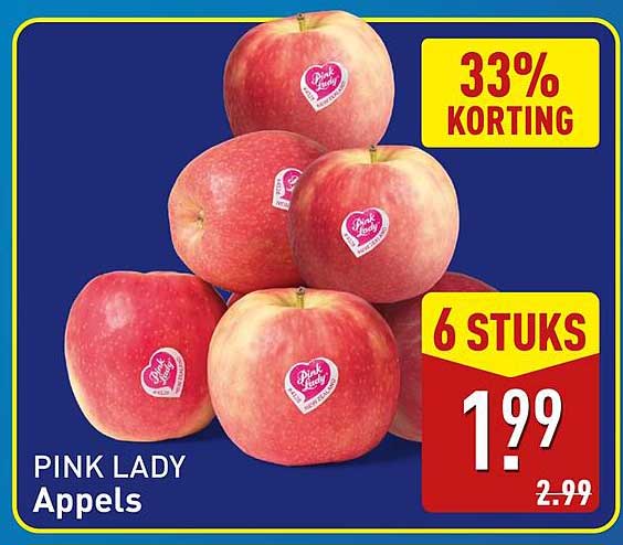 Bekijk de Pink Lady Appels aanbieding bij ALDI! Deze fantastische aanbieding is nu beschikbaar in de nieuwste ALDI folder. Profiteer van deze kans en bespaar flink op je aankoop.