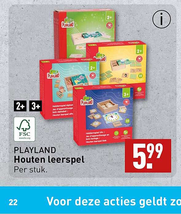 Bekijk nu de PLAYLAND Houten leerspel aanbieding in de ALDI folder. Deze aanbieding is geldig van 12-08-2024 tot en met 18-08-2024.
