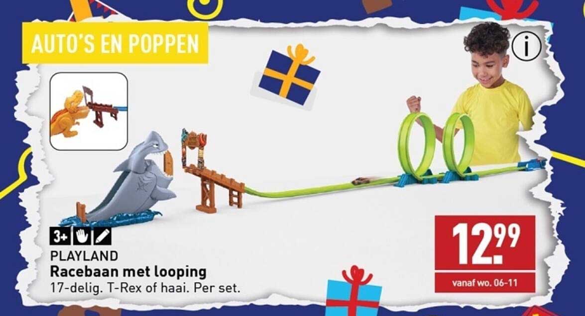 Bekijk de Playland Racebaan Met Looping aanbieding bij ALDI! Deze fantastische aanbieding is nu beschikbaar in de nieuwste ALDI folder. Profiteer van deze kans en bespaar flink op je aankoop.