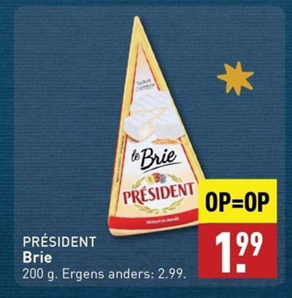 Bekijk de Président Brie aanbieding bij ALDI! Deze fantastische aanbieding is nu beschikbaar in de nieuwste ALDI folder. Profiteer van deze kans en bespaar flink op je aankoop.