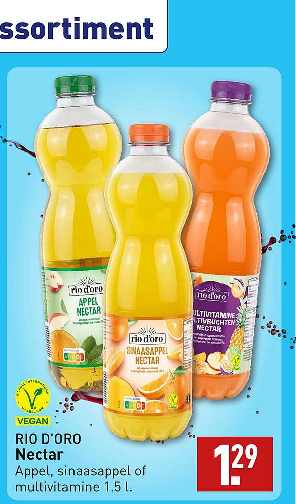 Ontdek de geweldige Rio D'oro Nectar aanbieding in de nieuwste ALDI folder. Naast deze aanbieding vind je nog veel meer aantrekkelijke kortingen. Je kunt de Rio D'oro Nectar eenvoudig online bestellen via de ALDI website of kopen in een winkel bij jou in de buurt.