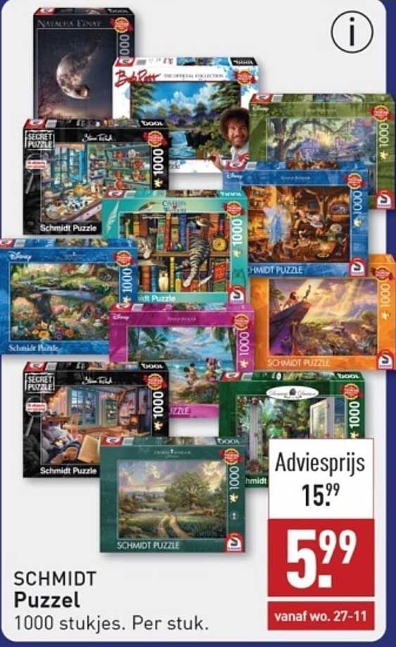 Bekijk de Schmidt Puzzel aanbieding bij ALDI! Deze fantastische aanbieding is nu beschikbaar in de nieuwste ALDI folder. Profiteer van deze kans en bespaar flink op je aankoop.