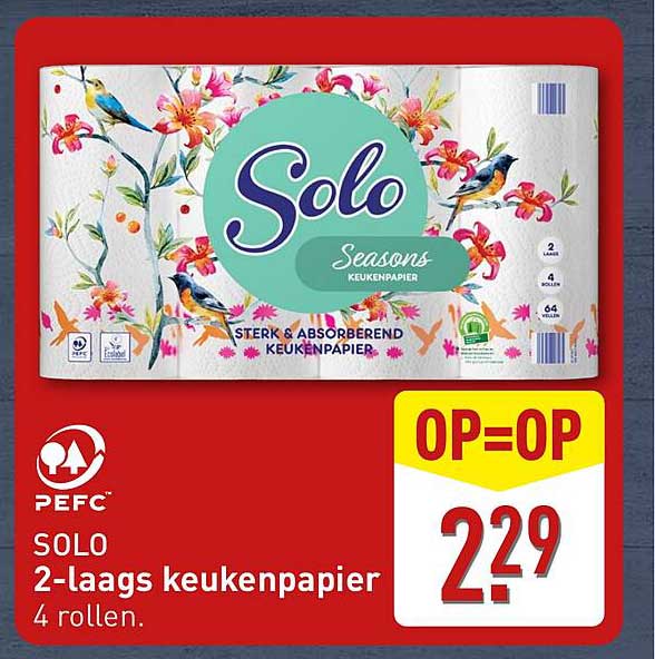 Bekijk nu de SOLO 2-laags keukenpapier aanbieding in de ALDI folder. Deze aanbieding is geldig van 22-04-2025 tot en met 27-04-2025.