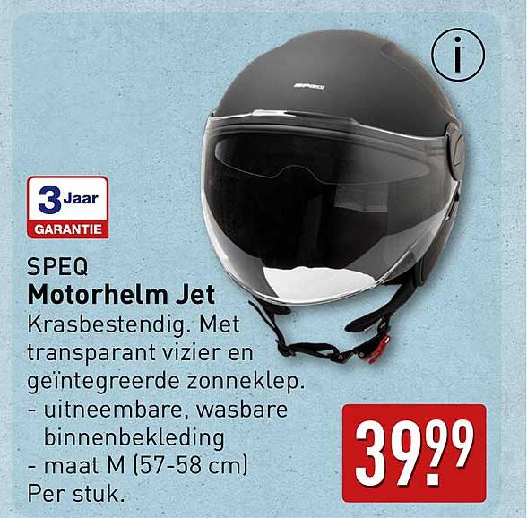 Bekijk de Speq Motorhelm Jet aanbieding bij ALDI! Deze fantastische aanbieding is nu beschikbaar in de nieuwste ALDI folder. Profiteer van deze kans en bespaar flink op je aankoop.