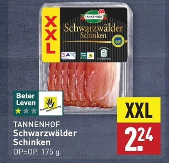 Bekijk de Tannenhof Schwarzwälder Schinken aanbieding bij ALDI! Deze fantastische aanbieding is nu beschikbaar in de nieuwste ALDI folder. Profiteer van deze kans en bespaar flink op je aankoop.