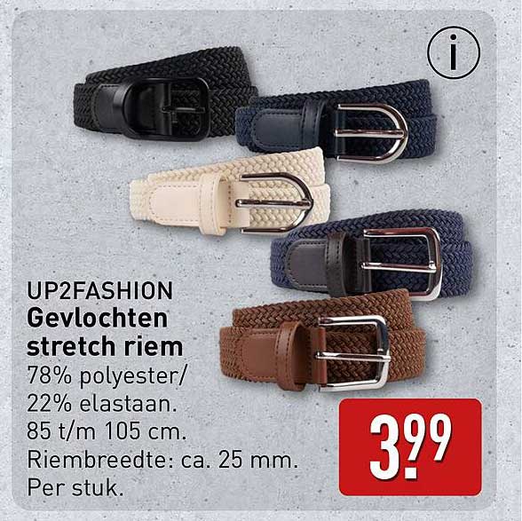 Bekijk nu de UP2FASHION Gevlochten stretch riem aanbieding in de ALDI folder. Deze aanbieding is geldig van 14-04-2025 tot en met 20-04-2025.