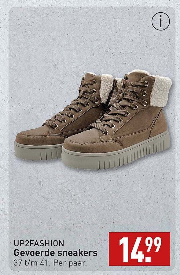 Bekijk de Up2Fashion Gevoerde Sneakers aanbieding bij ALDI! Deze fantastische aanbieding is nu beschikbaar in de nieuwste ALDI folder. Profiteer van deze kans en bespaar flink op je aankoop.