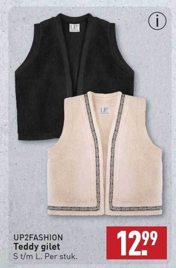 Bekijk de Up2Fashion Teddy Gilet aanbieding bij ALDI! Deze fantastische aanbieding is nu beschikbaar in de nieuwste ALDI folder. Profiteer van deze kans en bespaar flink op je aankoop.
