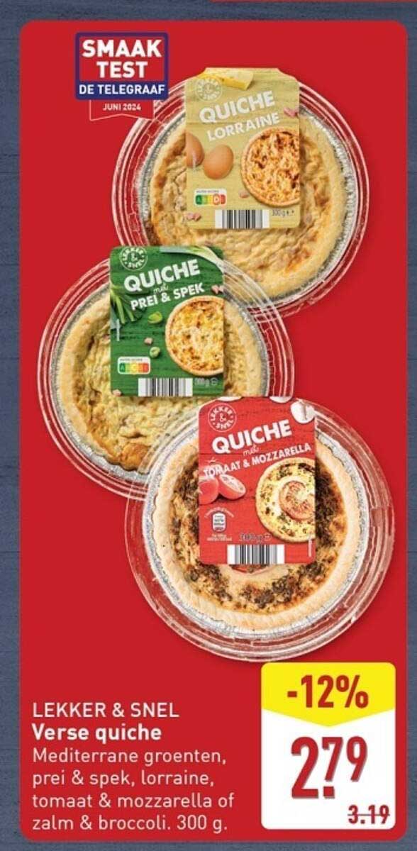 Ben je op zoek naar een snelle en lekkere maaltijd? Dan is de verse quiche van ALDI iets voor jou! Deze quiche, die verkrijgbaar is in verschillende smaken zoals prei & spek, lorraine, en tomaat & mozzarella, biedt een heerlijke combinatie van verse ingrediënten en een perfecte smaakbalans. Het is een ideale keuze voor drukke avonden, gezellig eten met vrienden of zelfs als voorgerecht bij een speciale gelegenheid.