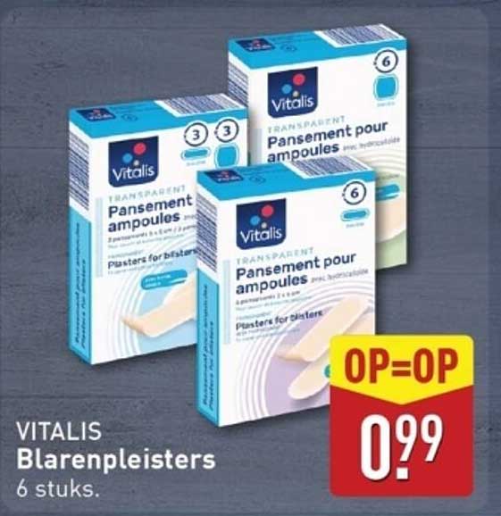 Heb je vaak last van blaren, vooral tijdens lange wandelingen of op nieuwe schoenen? Dan is deze aanbieding van VITALIS een echte aanrader! Met de VITALIS blarenpleisters heb je altijd een ideale oplossing bij de hand om die vervelende blaren te verzorgen en de genezing te versnellen. Je kunt ze in drie varianten krijgen en ze zijn op dit moment in de ALDI-folder voor een ongelofelijke prijs!