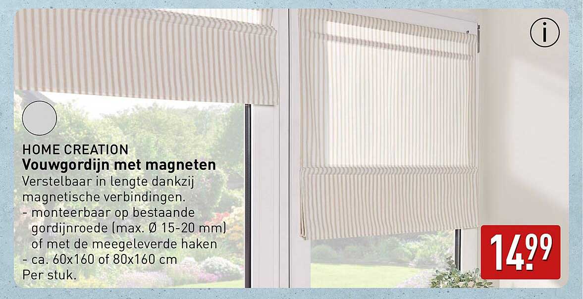 Bekijk de Vouwgordijn Met Magneten aanbieding bij ALDI! Deze fantastische aanbieding is nu beschikbaar in de nieuwste ALDI folder. Profiteer van deze kans en bespaar flink op je aankoop.