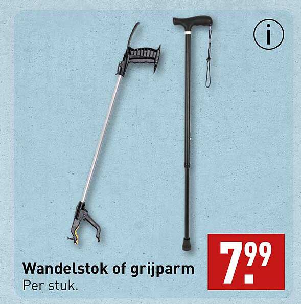 Bekijk de Wandelstok Of Grijparm aanbieding bij ALDI! Deze fantastische aanbieding is nu beschikbaar in de nieuwste ALDI folder. Profiteer van deze kans en bespaar flink op je aankoop.