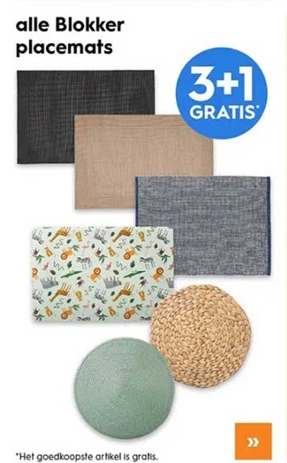 Ontdek de geweldige Alle Blokker Placemats aanbieding in de nieuwste Blokker folder. Naast deze aanbieding vind je nog veel meer aantrekkelijke kortingen. Je kunt de Alle Blokker Placemats eenvoudig online bestellen via de Blokker website of kopen in een winkel bij jou in de buurt.