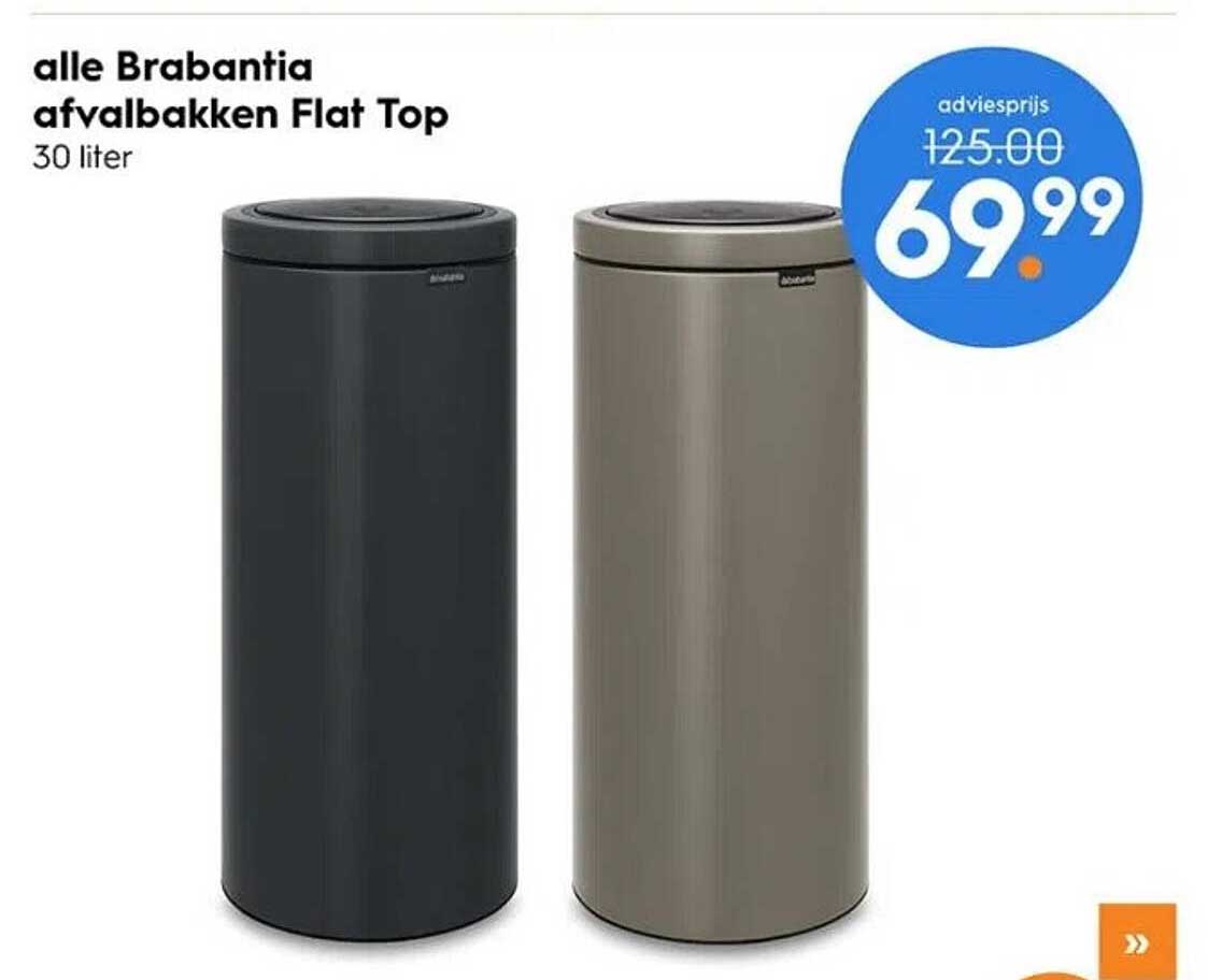Bekijk de Alle Brabantia Afvale Bakken Flat Top aanbieding bij Blokker! Deze fantastische aanbieding is nu beschikbaar in de nieuwste Blokker folder. Profiteer van deze kans en bespaar flink op je aankoop.