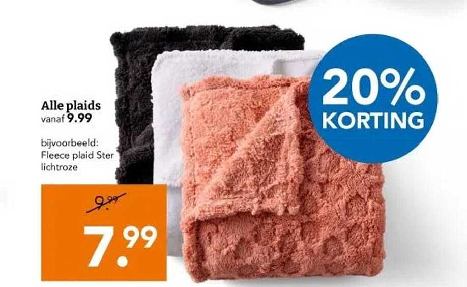 Zoek je een heerlijke plaid om jezelf warm te houden tijdens de koude avonden? Dan is dit de perfecte kans! Bij Blokker krijg je nu elk fleece plaid met een geweldige korting van 20%. Kijk snel hier om de varianten te ontdekken en profiteer van deze aanbieding. Van 13 oktober tot en met 26 oktober is dit aanbod geldig, dus mis het niet!